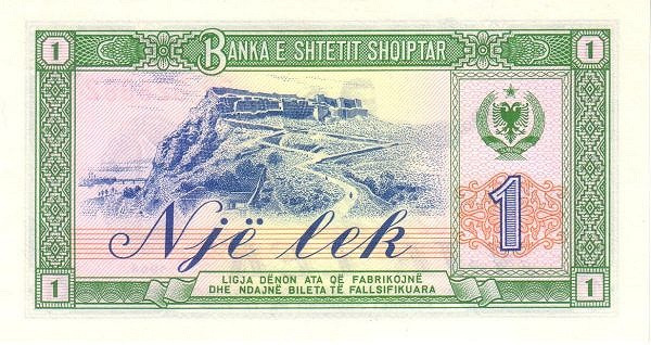 알바니아 화폐에 있는 로자파 성의 그림