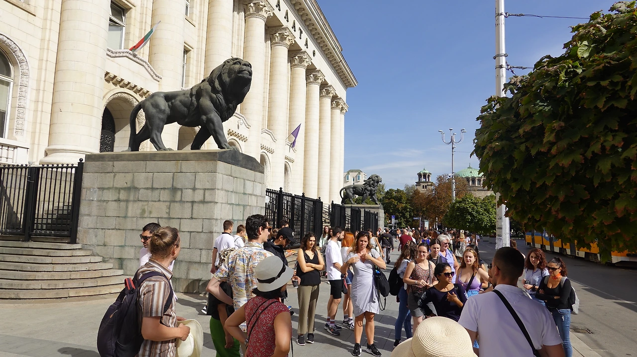 사자 모양의 불가리아 지도와 불가리아의 상징이라고 알려진 사자상 그런데 생각보다 사람들이 꽤 많다.