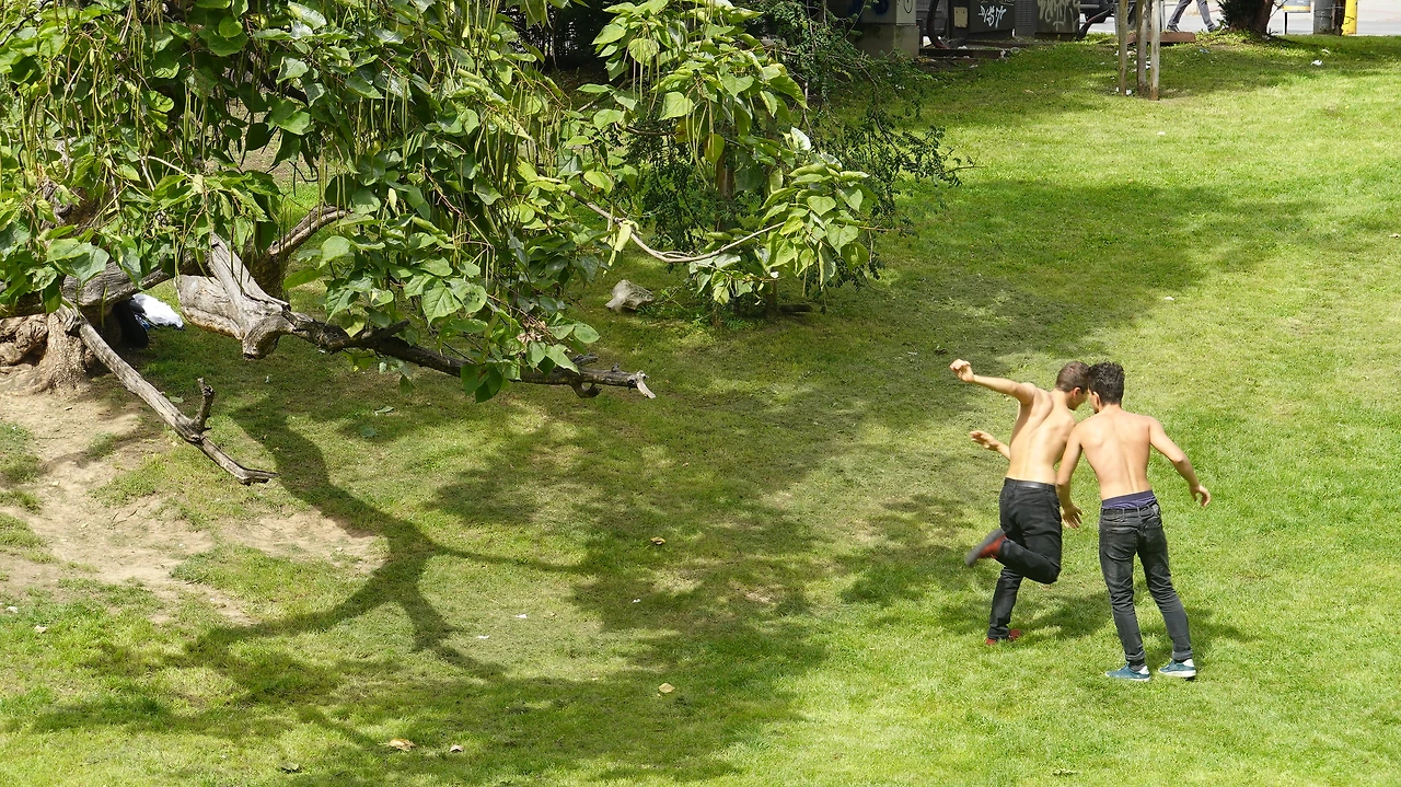공원 벤치와 잔디밭엔 대화를 즐기는 사람들의 모습이 평화롭고 여유있어보인다.