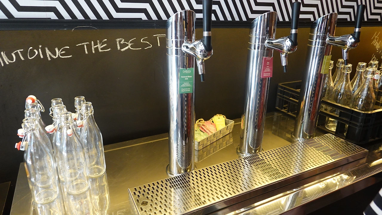 마치 생맥주를 따라 마시는 수도꼭지처럼 보이는 디스펜서가 있는 것이다. 설명을 들어 보니 고객이 직접 가져온 병이나 가게에 있는 빈 병에 좋아하는 와인을 담아가는 데 사용하는 것이라고 했다.