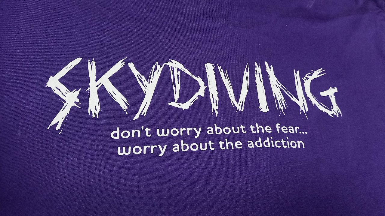 스카이다이빙을 마치고 기념품으로 받은 보라색 티셔츠에는 아주 멋진 말이 쓰여 있었다.
