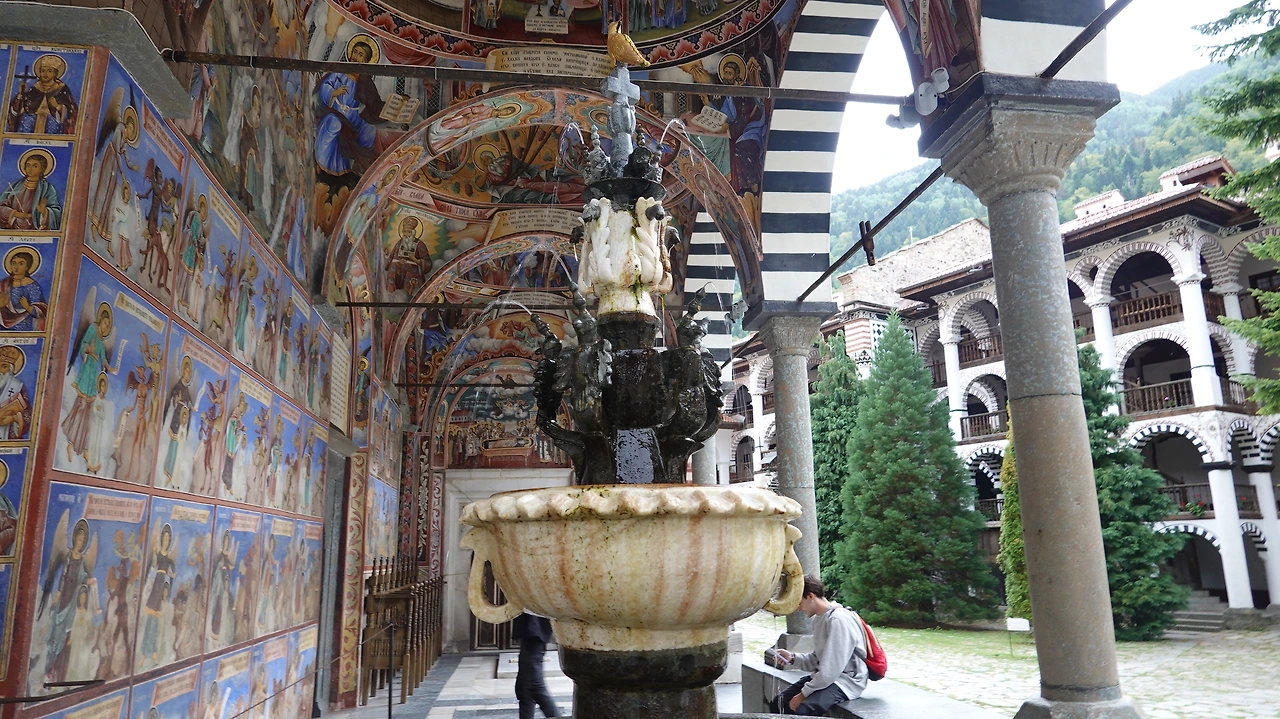 사실 이곳에 오기 전 사진과 동영상으로 볼 때는 릴라 수도원에 칠해진 흰색과 붉은색들이 주변 자연환경과 동떨어진다고 여겨 이질감을 느꼈는데 실제 와보니 전혀 그렇지 않다.