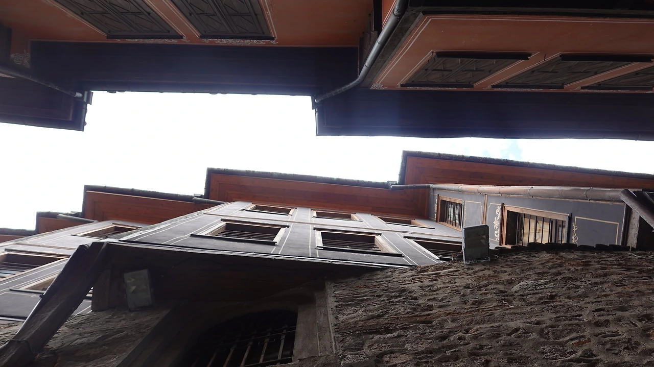 심지어는 자동차도 사람도 지나기 어려울 정도의 좁은 골목을 상부 쪽이 튀어나와 하늘을 가릴 정도다.ㅎㅎ