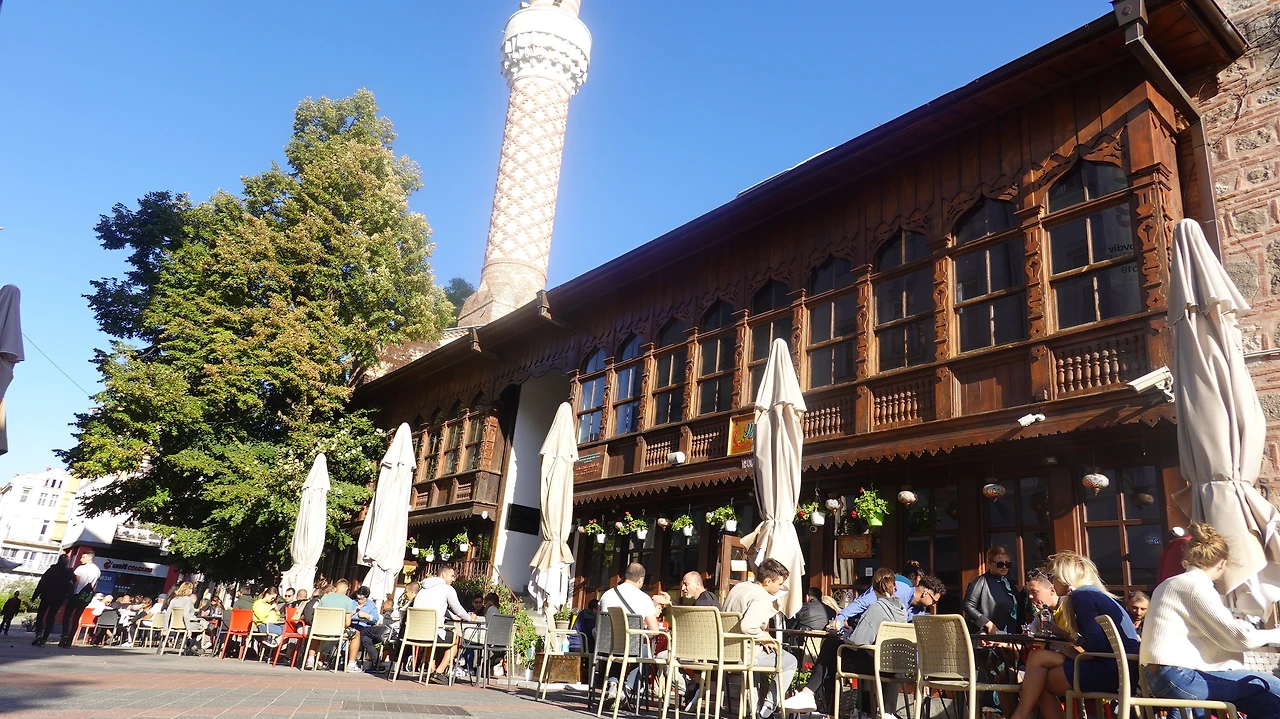 이 사원은 플로브디프가 다양한 국가의 침략을 받으며 '그리스 사원'에서 '가톨릭 교회'로 다시 '모스크'로 바뀐 사연 많은 건물인데 지금은 1층이 고급스러운 카페로 이용되어 야외 테라스에 앉아 많은 사람들이 아름다운 가을 오후를 만끽하고 있다.