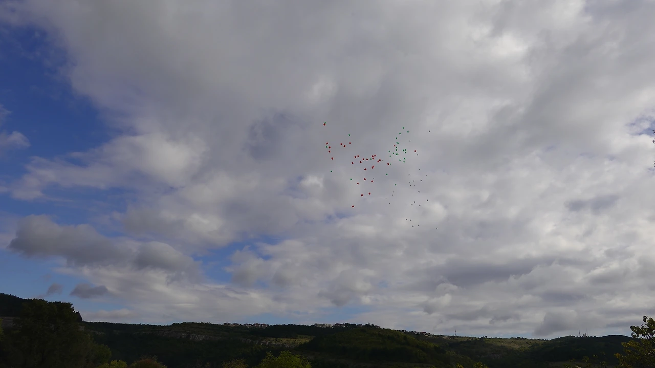 하양, 초록, 빨강의 순서로 하늘로 올라가는 삼색 풍선들의 모습은 불가리아 국기를 상징하고 있었다.