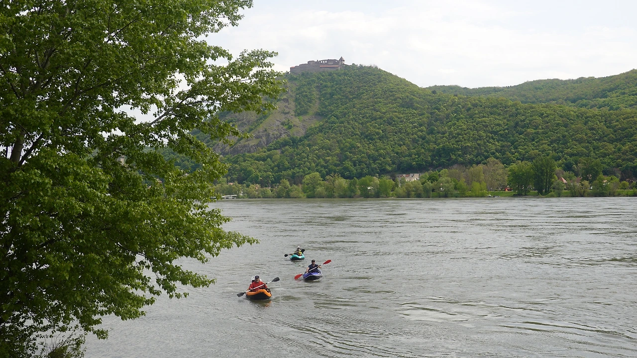 다뉴브강을 따라 한가롭게 카약을 즐기는 사람도 보인다.