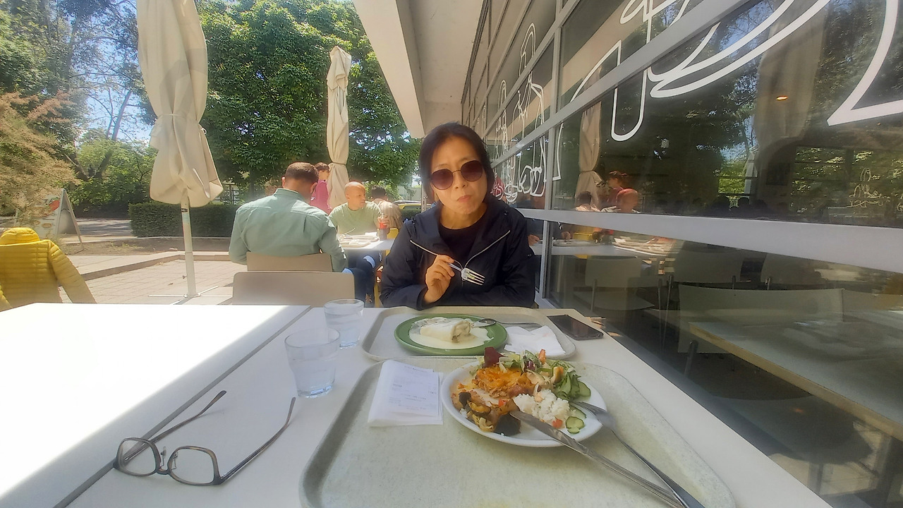 따뜻한 날씨덕에 야외 테이블로 나가 점심 식사를 하는데 햇살이 포근하고 예쁘다.
