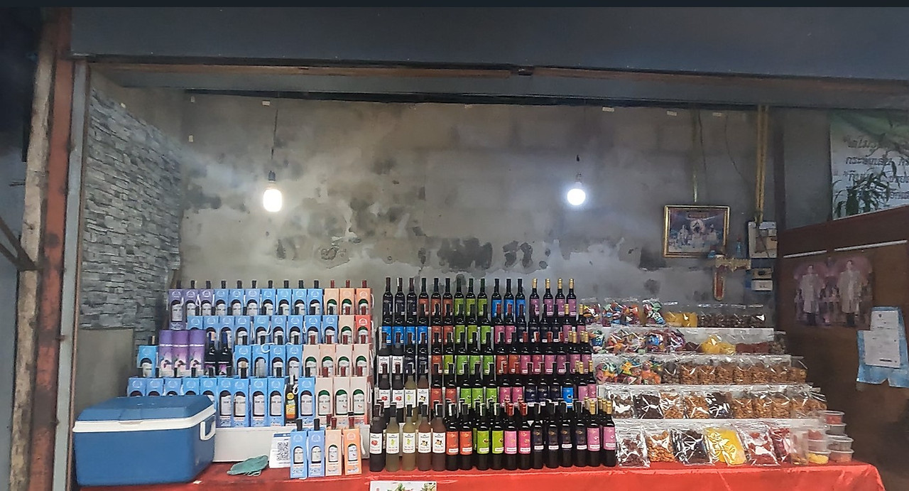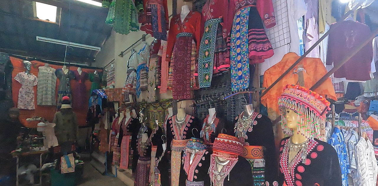 주로 라탄으로 만들어진 가방들, 직접 손으로 짠 뜨게 용품들, 몽족이 입는 화려한 전통복을 전시해 놓고 팔고 있고 갓 구운 아몬드와 와인도 판다.