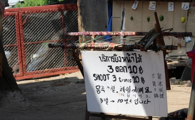 화살을 쏘아 건너편 나무에 걸려있는 과녁에 맞히는 놀이기구가 있어 남편과 아들이 시도를 해보는데 제법 잘 쏜다.