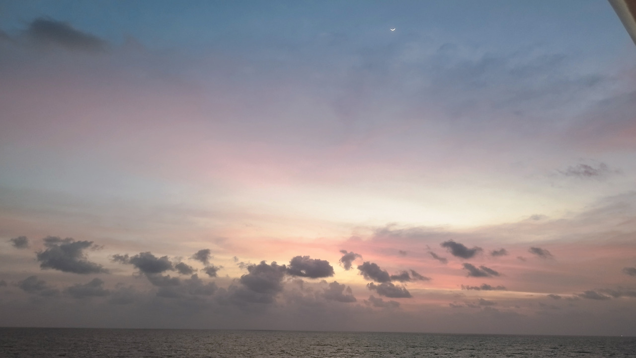 나는 주로 해질 무렵, 배의 선미와 선두를 돌며 산책을 한다.