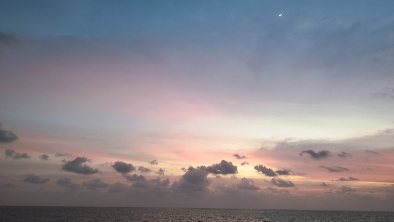 먼바다에 있으면 오로지 볼 수 있는 건 끝없이 펼쳐지는 수평선과 하늘이다.