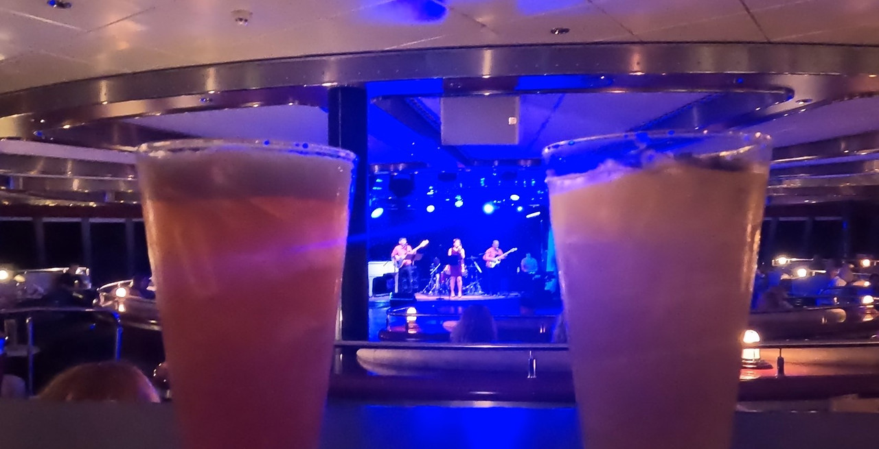 크루즈는 밤이 되면 멋진 슈트와 화려한 드레스를 입은 사람들과 손에는 칵테일을 들고 있는 사람들을 쉽게 볼 수 있고 여기저기 bar에는 많은 사람들이 모여 술잔을 들고 서서 이야기하거나 테이블에 앉아 대화를 하는 모습들을 볼 수 있다.