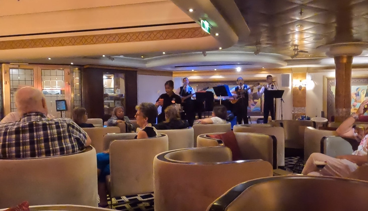 크루즈 이용객들 80%가 넘게 나이가 지긋한 서양인들이기 때문에 1960~90년대 유행했던 곡들이 주로 불려지고 연주된다.