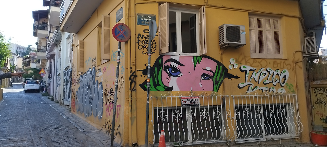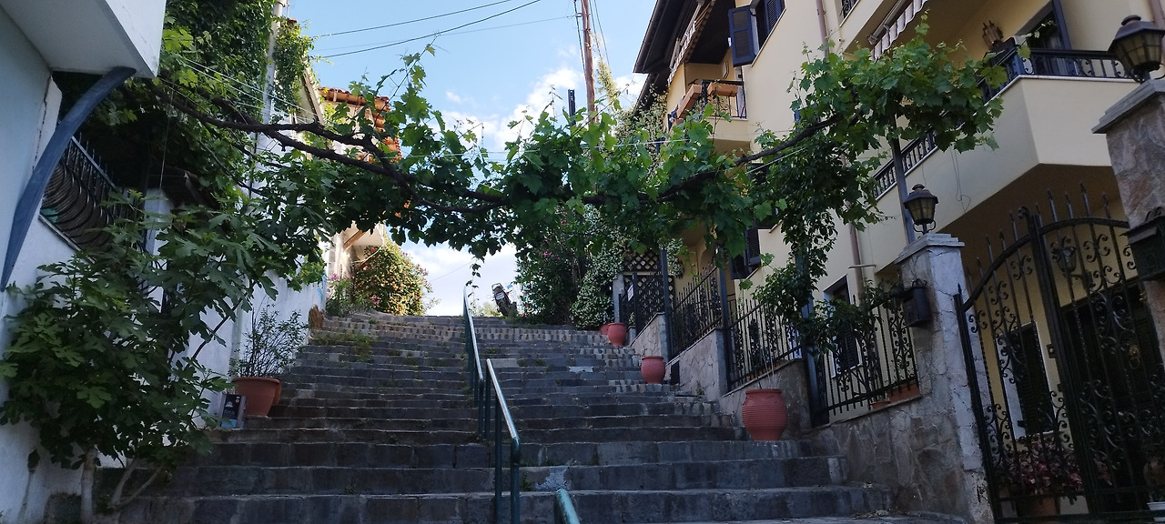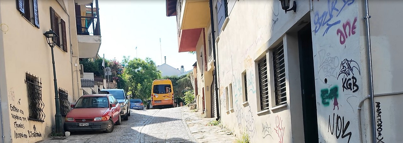 우리는 지금 좁은 골목들이 미로처럼 이어져있는 테살로니키의 구시가지 높은 언덕에 묵고 있는데