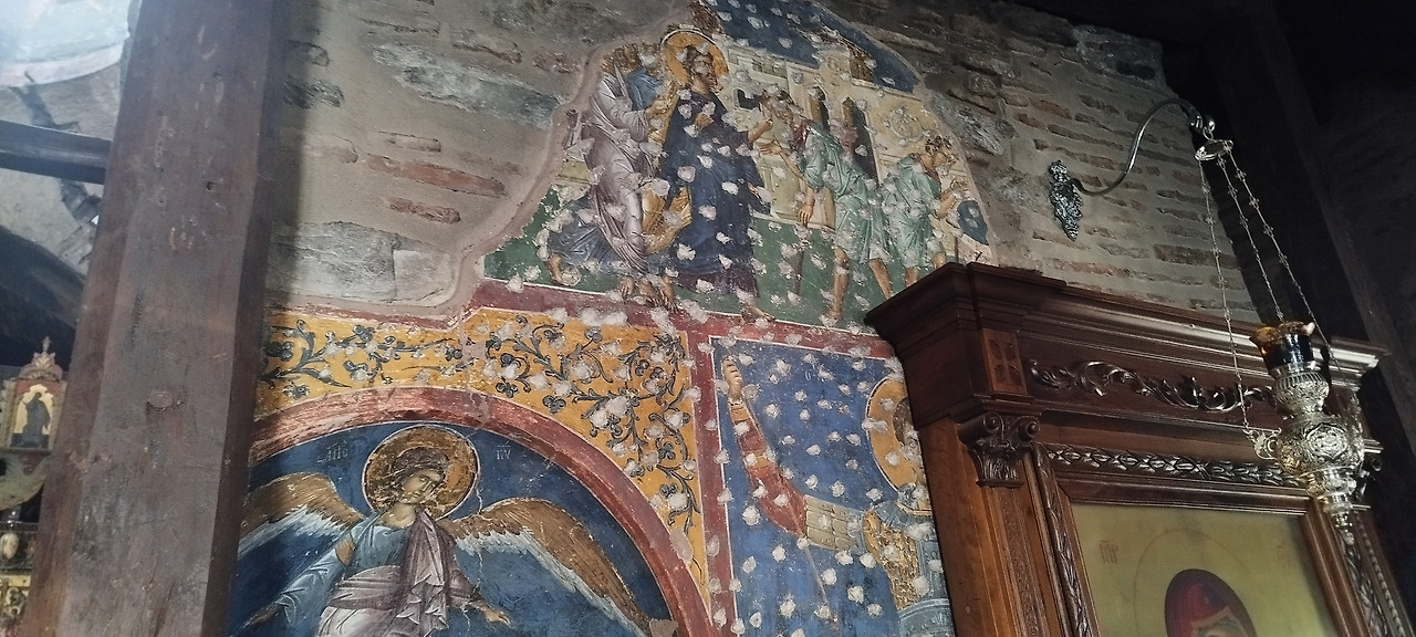 14세기에 그려진 내부의 프레스코화는 지진 복원 작업 중에 공개된 것으로