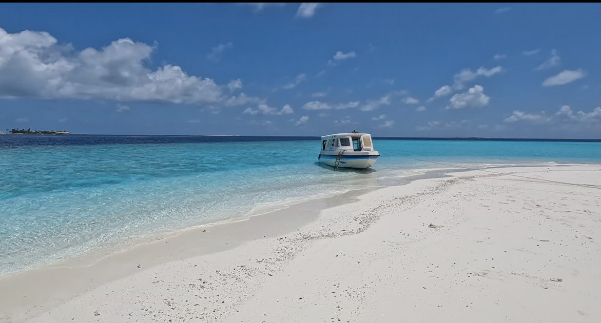 산호가 많은 몰디브 바다는 샌드뱅크를 여기저기서 쉽게 볼 수 있는 것이 특징이다.