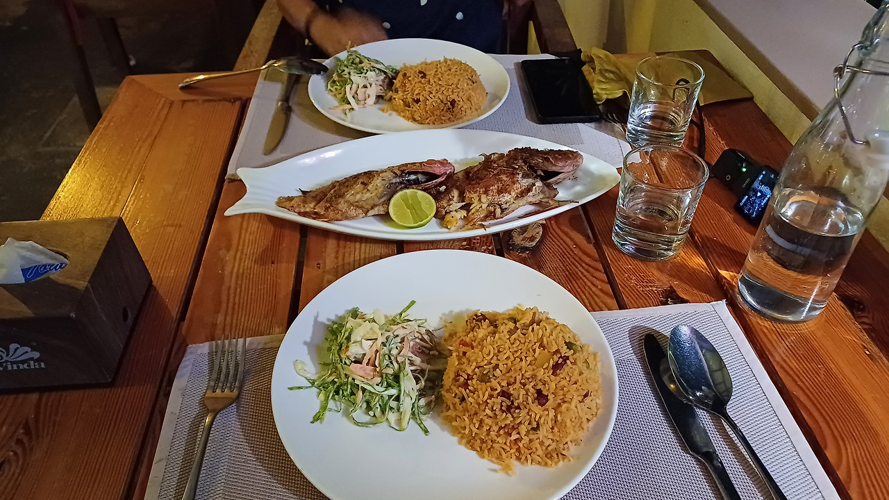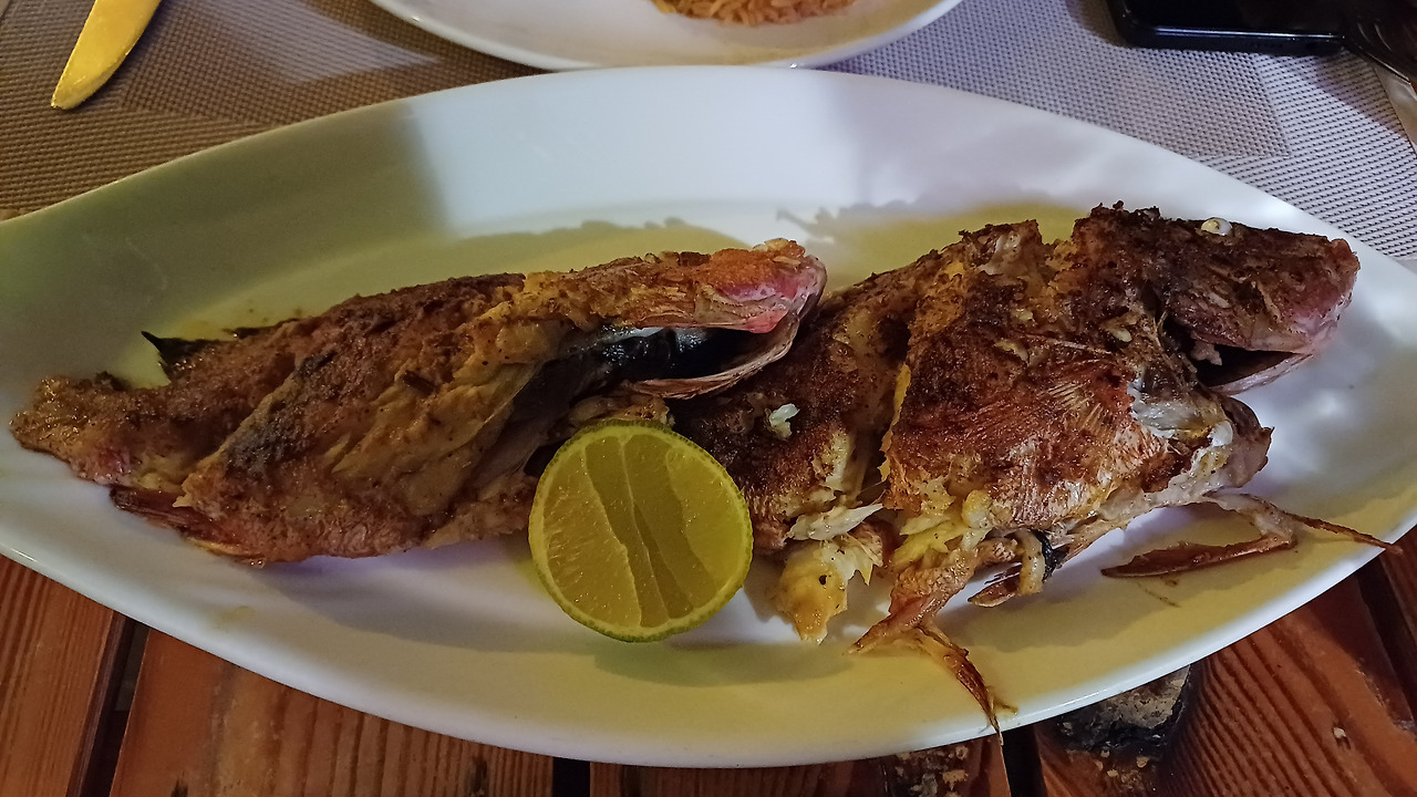 방금 잡은 물고기가 저녁 식탁에 올려지니 역시 싱싱하고 살이 통통해 아주 맛나다.