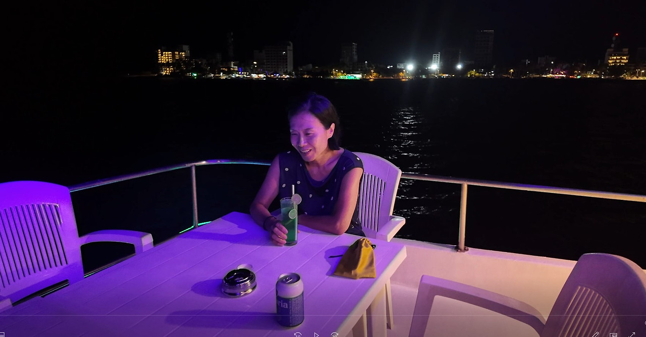 그 요트는 화려한 네온사인과 신나는 음악으로 사람들을 끌어들이고 있었다.