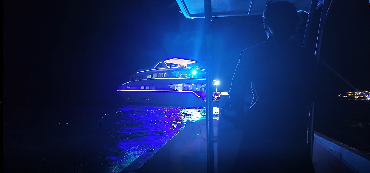 우리는 항구에 정박해 있는 작은 배를 빌려 타고 커다란 요트로 향했다.