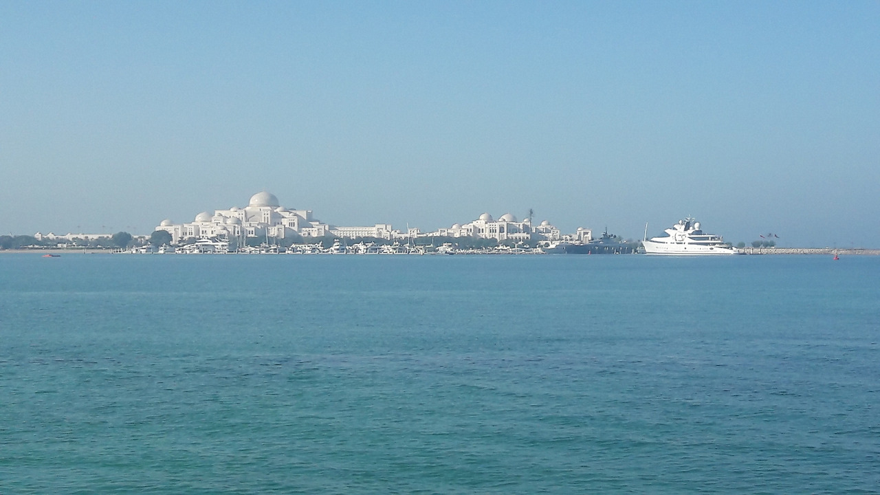 아부다비 몰 근처 산책코스에서 바라본 왕궁과 왕의 요트-페르시아 해