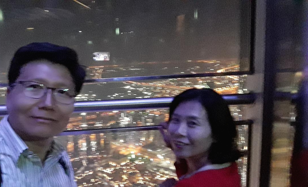 드디어 오랜(?) 시간 동안 탔던 엘리베이터에서 내려 두바이의 야경을 보았다.