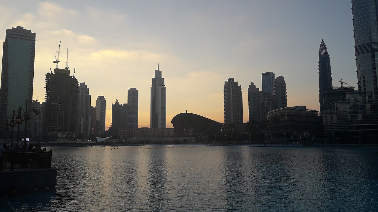서서히 해가 지기 시작하는 부르즈칼리파의 호수, 버즈 레이크(Burj Lake)