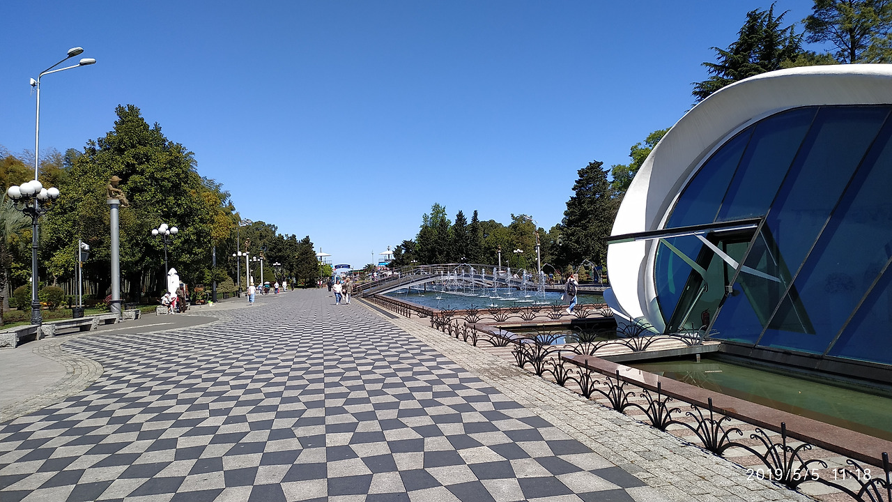 우리의 첫 방문 장소는 바로 바다와 함께 있는 바투미 해양공원이었다. 이곳은 예쁜 건축물들과 독특한 조형물들, 그리고 나무가 우거진 길게 뻗은 산책로도 있는 멋진 공원이다.