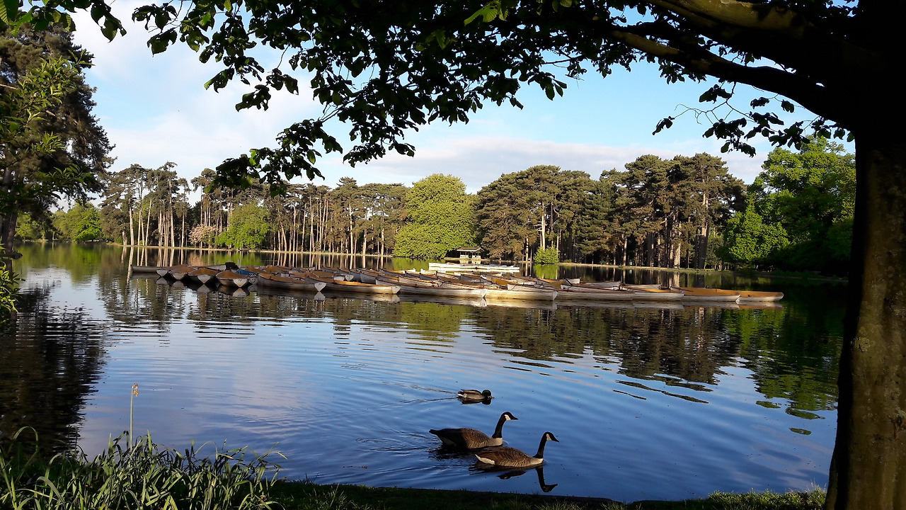 여기저기서 들려오는 새들의 지저귐, 시원한 바람 그리고 햇빛에 비치는 잔잔한 호수와 그 위를 유유희 헤엄치는 오리들. 호수에 비치는 나무와 하늘과 구름들이 한 폭의 수채화를 연상케 한다.