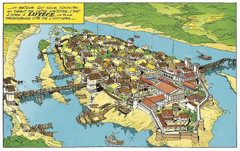 시테 섬이 도시로 틀을 잡게 된 과정에 대한 다양한 이야기가 전해지고 있지만 그 가운데서 율리우스 카이사르(Gaius Julius Caesar)가 쓴 '갈리아 전쟁기(Commentarii de Bello Gallico)'에 나오는 내용, 즉 기원전, ‘시테섬’에 ‘파리시(Parisii)’족이 살았으며 이로 인해 '파리'란 이름도 탄생된 것이라는 설이 일반적 이론이다.