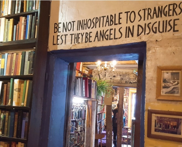 'Be not inhospitable to strangers lest they be angels in disguise (천사로 위장했을지도 모르니 낯선 사람들에게 불친절하게 대하지 말 것)'