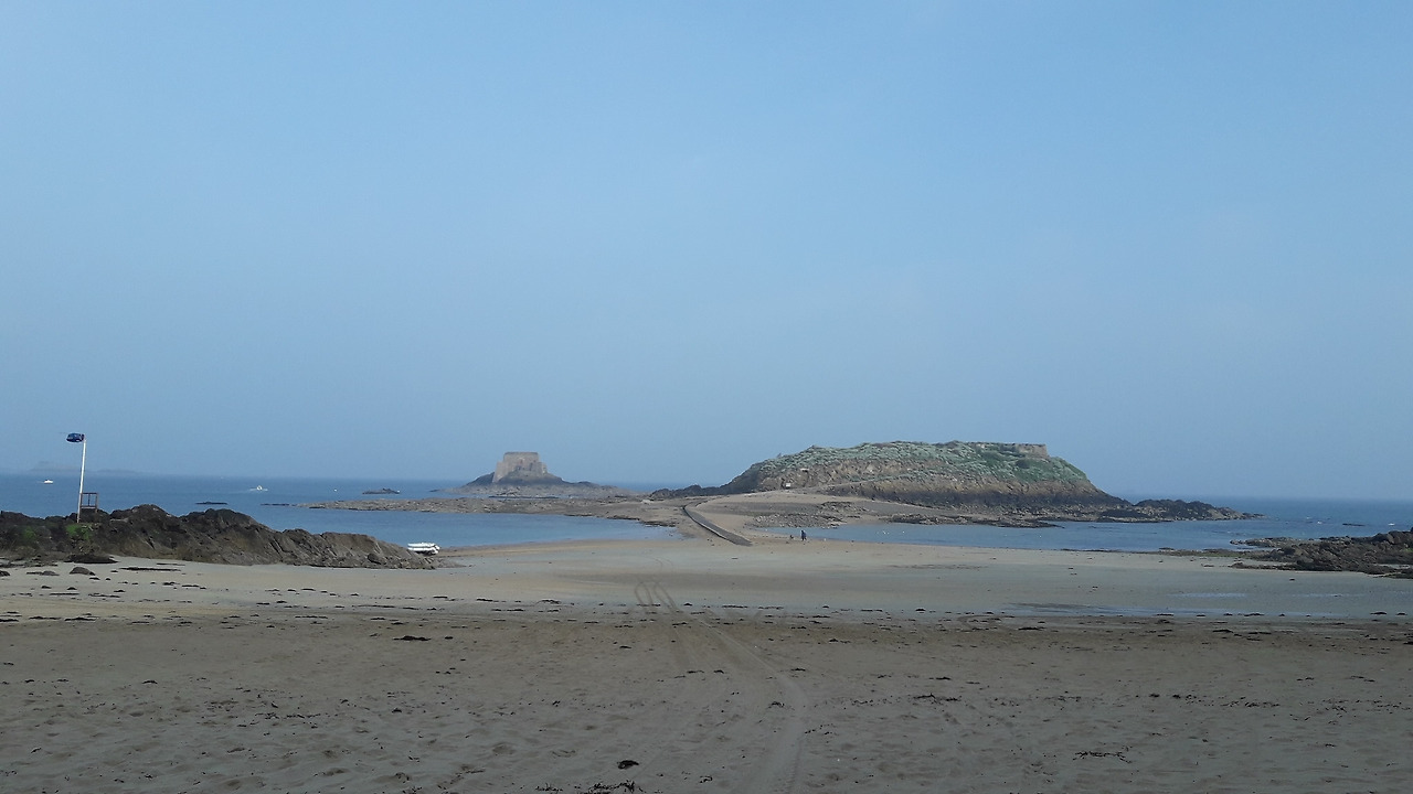 조수 간만의 차가 제법 큰 바다라고 하는데 지금은 썰물이 되어 바다 수영장이 보이고 저 멀리 그랑 베 섬까지 걸어갈 수가 있다.
