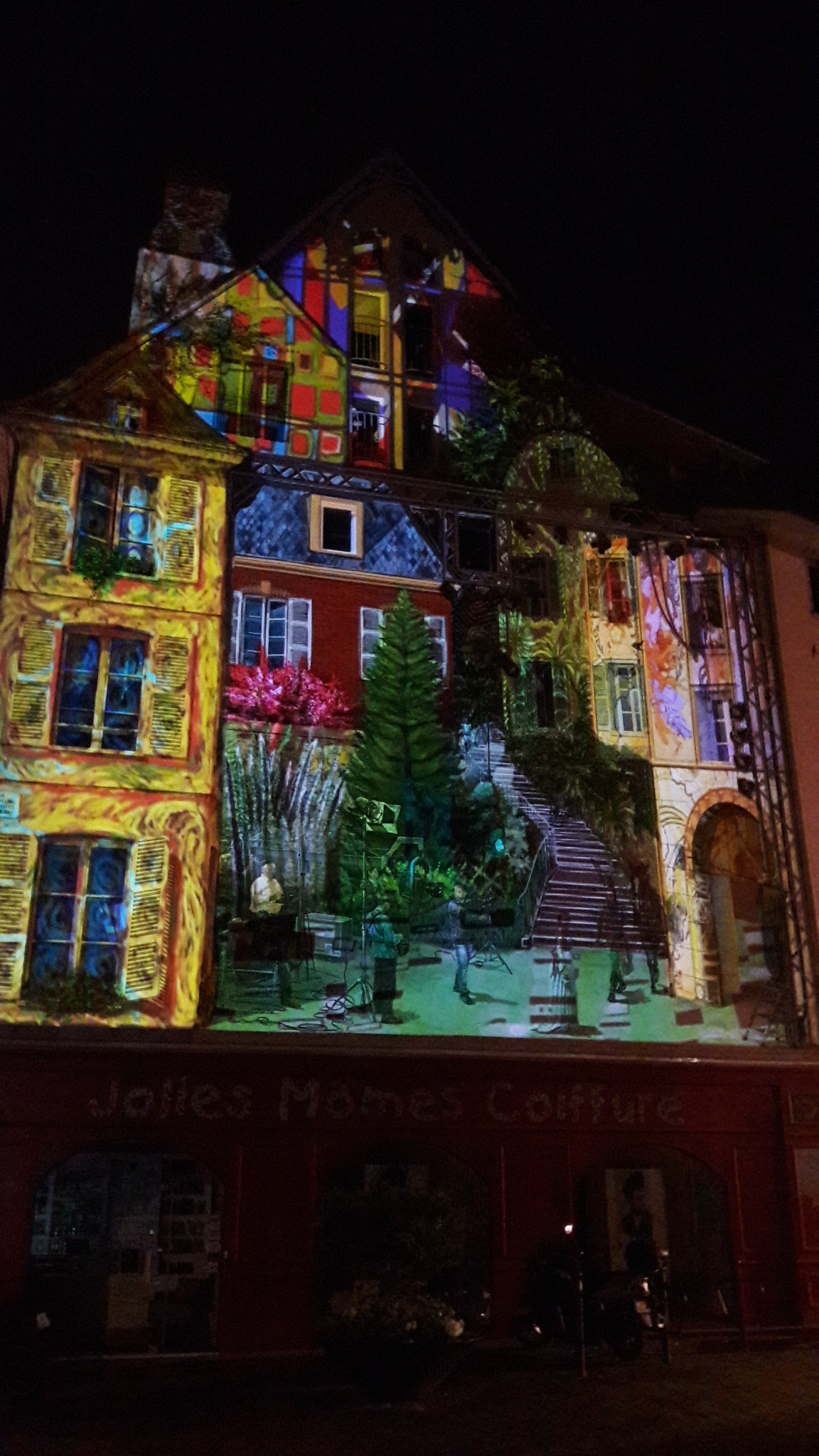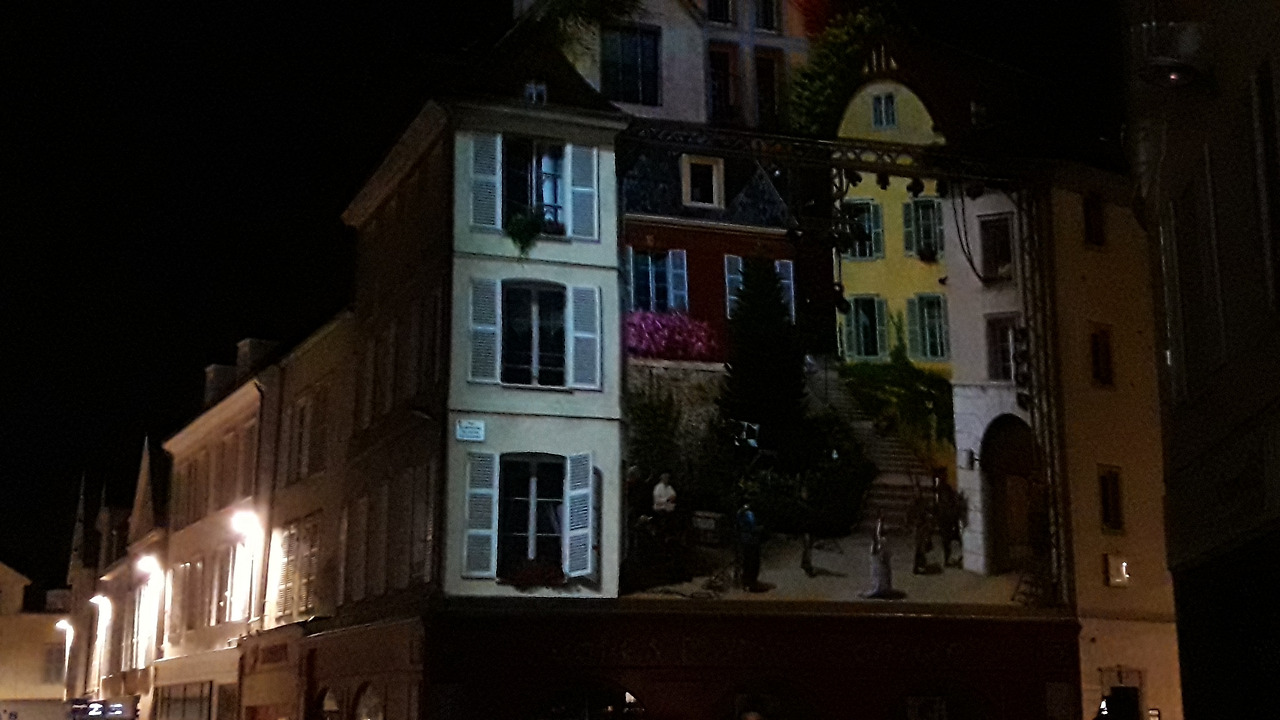 낮에는 한낱 차가운 돌들과 콘크리트로 된 벽들이 밤에는 따뜻한 색상들과 귀엽고 사랑스러운 그림으로 변해 샤르트르의 밤을 낭만적이고 포근한 밤으로 변신시키고 있었다.