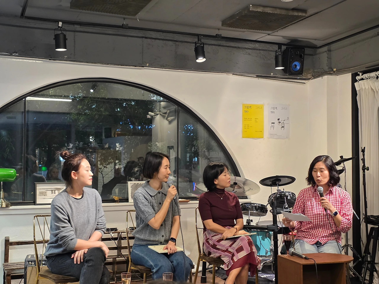 그림책을 읽는 목소리, 이야기를 나누며 눈시울을 붉히는 모습, 서로를 향한 응원의 눈빛, 책장 넘기는 소리가 어우러져 조용한 책방의 공기가 따뜻하게 데워졌다.