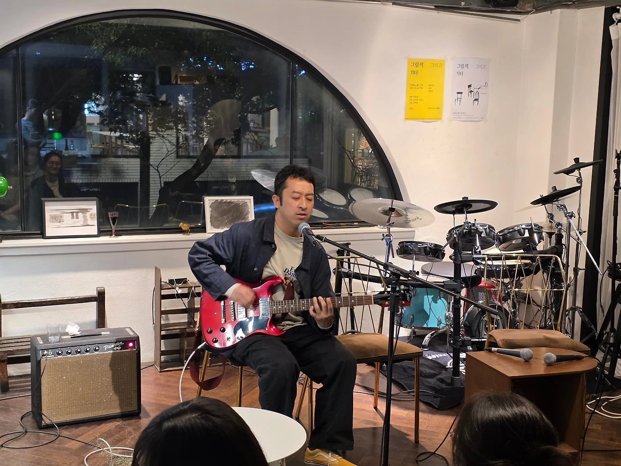 마지막은 기타 연주. 기타 현을 누르는 손의 진동과 연주자의 숨소리까지. 기타 선율의 움직임이 그림책 속의 선처럼 공간을 채운다. 와인의 힘일까? 금요일 밤의 환상일지도 모른다. 음악에 푹 빠져드는 이 시간이 편안하다.