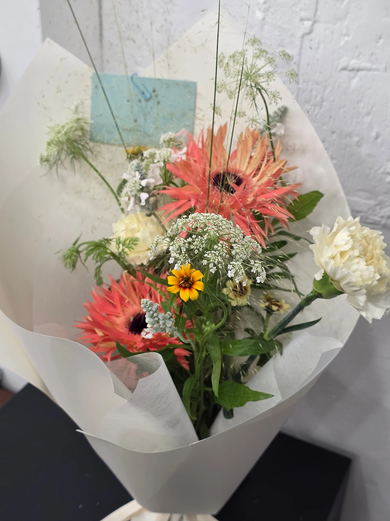 버스에서 내려 가까운 꽃집에 들렀다. 어울리는 꽃을 고르고 원하는 스타일을 이야기했다. 항상 뒤편에서 완성된 꽃다발만 봤는데, 여긴 내 앞에서 꽃다발 만드는 과정을 모두 보여준다! 꽃을 가지런히 배치하고, 길이를 맞춰 자르고, 포장지를 고르고, 아름답게 감싸는 모습을 보고 있자니 한 편의 아름다운 예술작품을 보는 것 같았다.