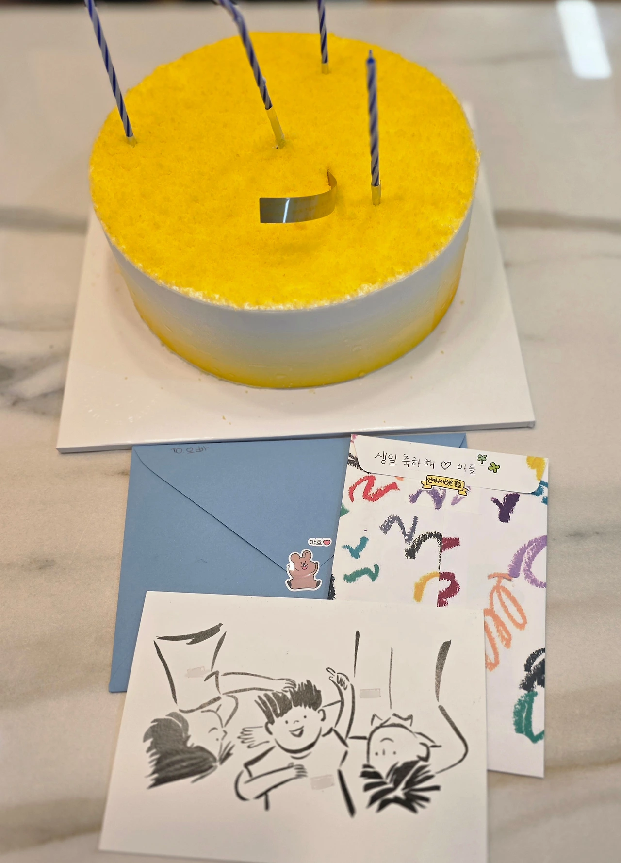 케이크보다 선물보다 편지를 받고 행복해하는 아들.