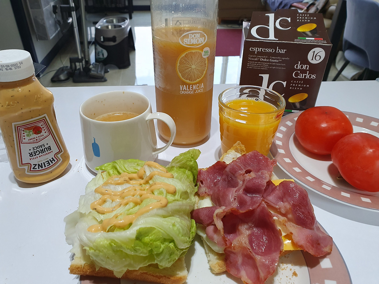 콜레스테롤치가 높아 삼시세끼 잡곡밥을 먹는 것이 좋지만 가끔은 그따위 건강상식 무시하고 곡물식빵을 굽고 가운데에는 기름진 베이컨과 계란프라이 그리고 살짝 녹인 치즈와 양상추를 가득 넣어 볼이 터져라 아침을 먹는다. 아침에 빵을 먹게 되면 어떻게 알았는지 마당에서 뛰어놀던 태리가 달려와 옆에 앉는다. 태리는 고기보다 빵을 좋아한다.
