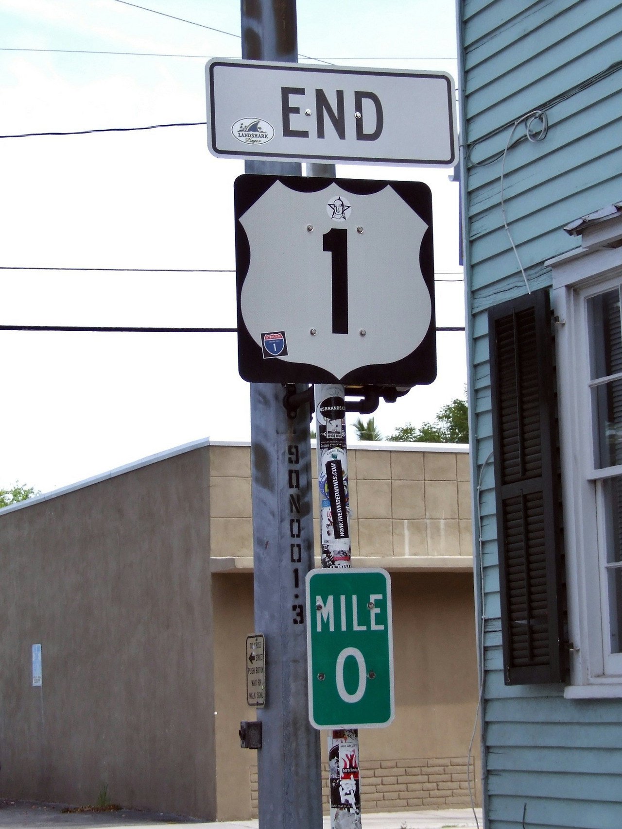 이 1번 국도 상징물은 키웨스트 섬에 위치한 유명한 관광지 중 하나다. 미국 1번 국도의 끝을 표시하는 표지판으로, "미국 1번 국도의 끝"이라고 쓰여 있다. 이곳 역시 기념사진을 찍는 사람으로 붐볐다.