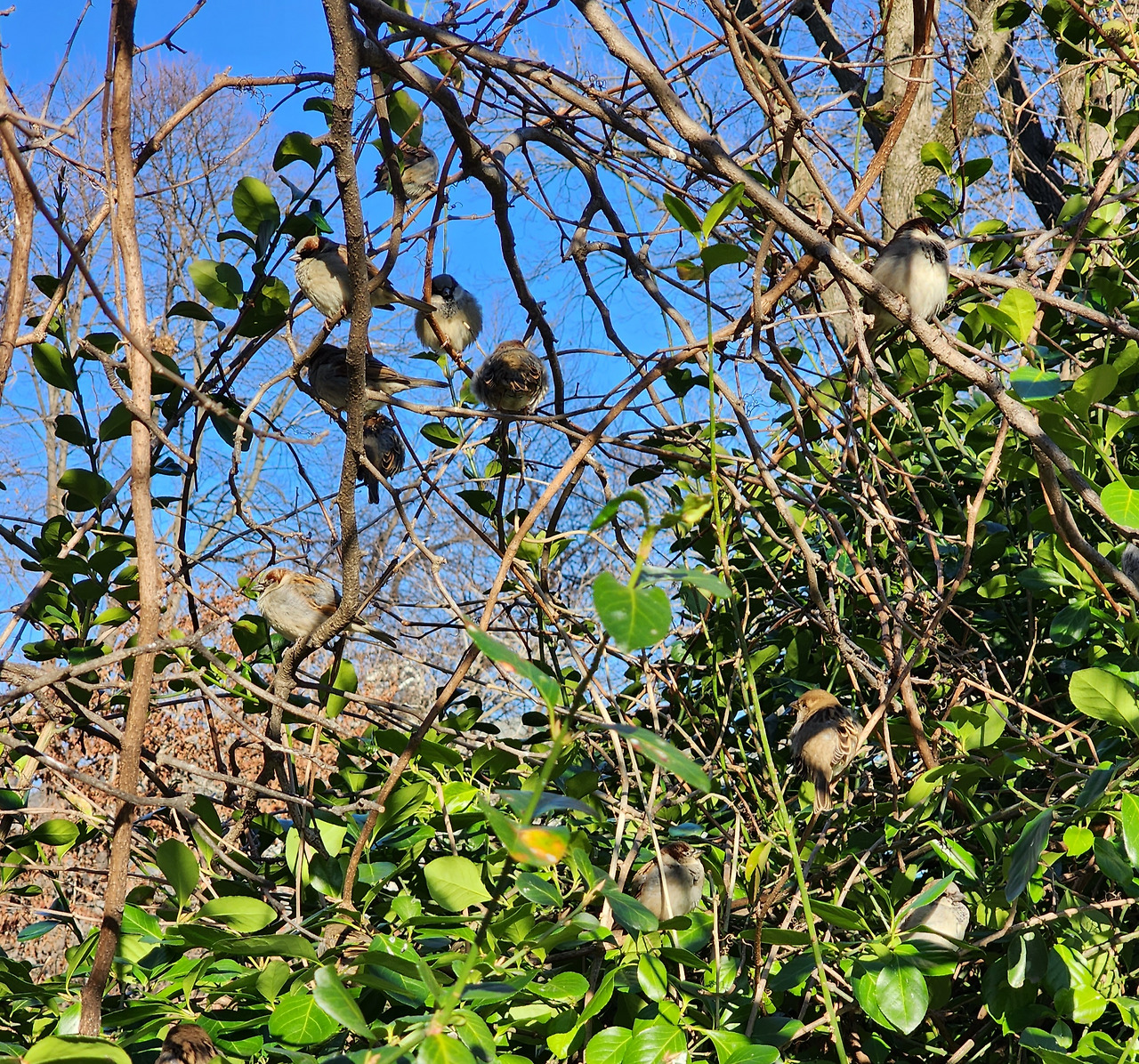 어디선가 부산한 새소리가 들렸다. 한 나무에 참새처럼 생긴 새가 20여 마리 앉아 있었다. 유독 그 나무에만 새가 많은 게 신기했다. 평소 보기 힘든 광경이어서 동영상을 찍었다. 새소리가 청아했다.
