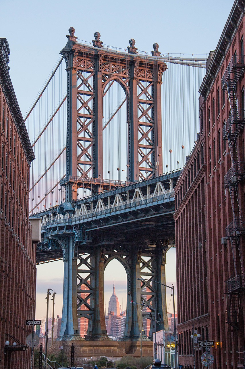 브루클린 다리는 뉴욕의 상징적인 다리로 1883년에 완공되었다. 이 다리는 미국 최초의 철제 현수교로 맨해튼과 브루클린을 연결하고 있는데 차량은 아래로 보행자는 위로 건널 수 있게 만들어졌다.