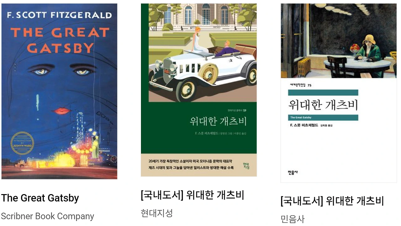 각 출판사에서 출간한 <위대한 개츠비> 책