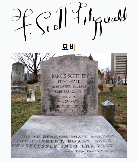 피츠제럴드의 서명과 묘비(자료 네이버)