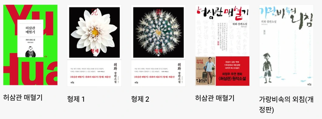 우리나라에서 가장 많이 팔리는 위화의 책은 <허삼관 매혈기>. <인생>, <제7일> 순이다.
