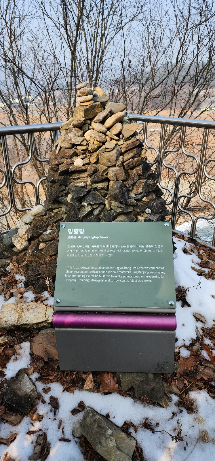 망향정으로 오르는 계단은 가파른 나무 계단으로 되어있었다. 계단을 오르다 보니 힘이 들어서인지 어느새 추위가 가셨다. 그리 높은 계단은 아니었으나 운동이 되었던 모양이다.
