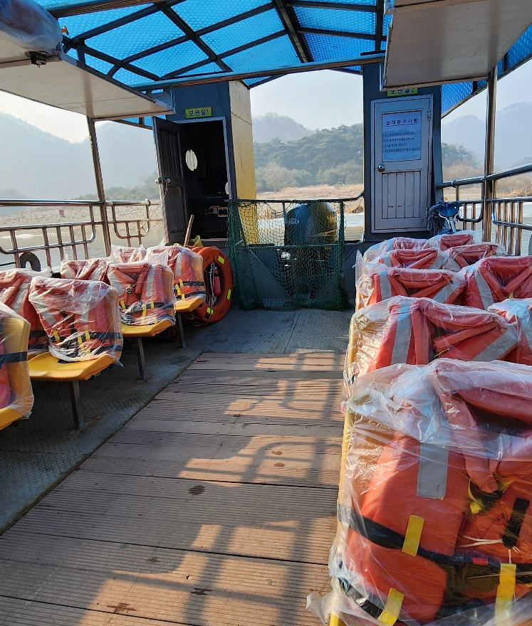벌써부터 손이 시리고 발이 시리니 걱정이 되었다. 배가 다가오기에 탔다.