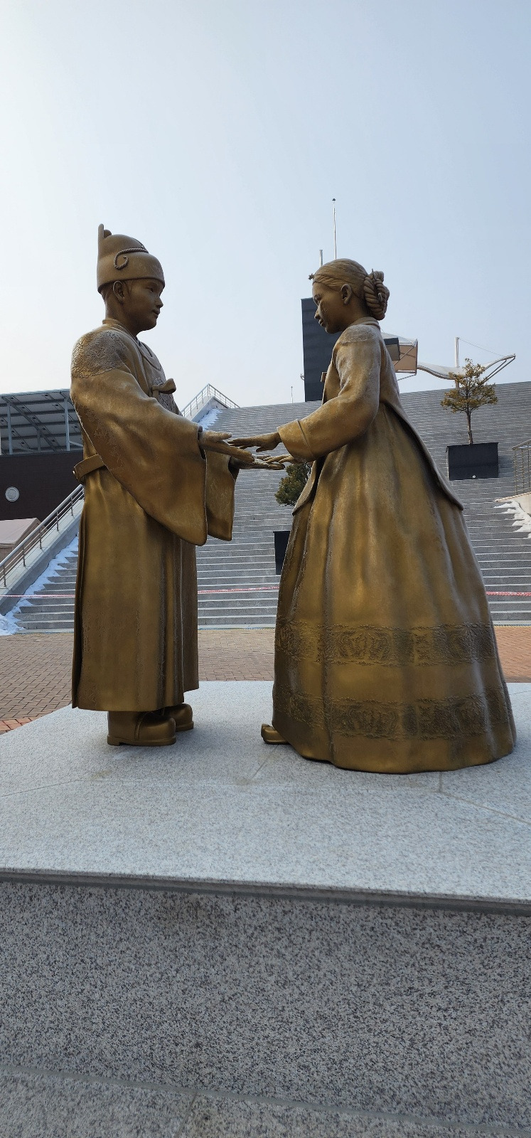 역사를 나와 다시 사진을 찍었다. 관광객을 위해 역을 보기 좋게 꾸며놓았다. 한쪽에 김삿갓 동상도 보였다.