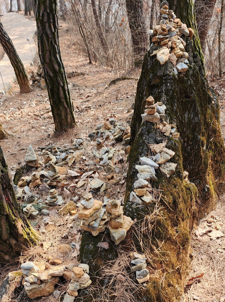 정순왕후 능에서 가져다 심은 청령송(精靈松)이 보였다. 이 나무는 멀리 떨어져 묻힌 단종과 정순왕후를 영혼이라도 함께 하라는 뜻으로 옮겨 심었다. 사람들이 쌓아 올린 돌탑도 여기저기 있었다.