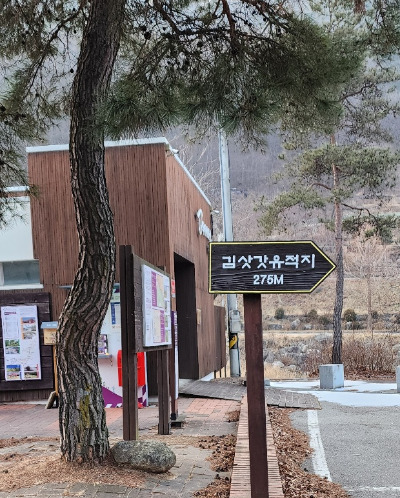 김삿갓문학관 이정표가 보여 왼쪽 다리를 건너자 꽤 넓은 주차장이 나왔다. 시간은 이미 5시 30분을 지나 어둑어둑해지고 있었다.