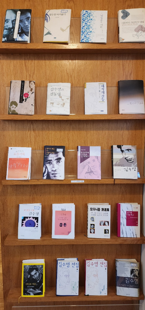 1층 한쪽에는 김수영 작가에 관한 논문이 4단 책장에 가득했다.