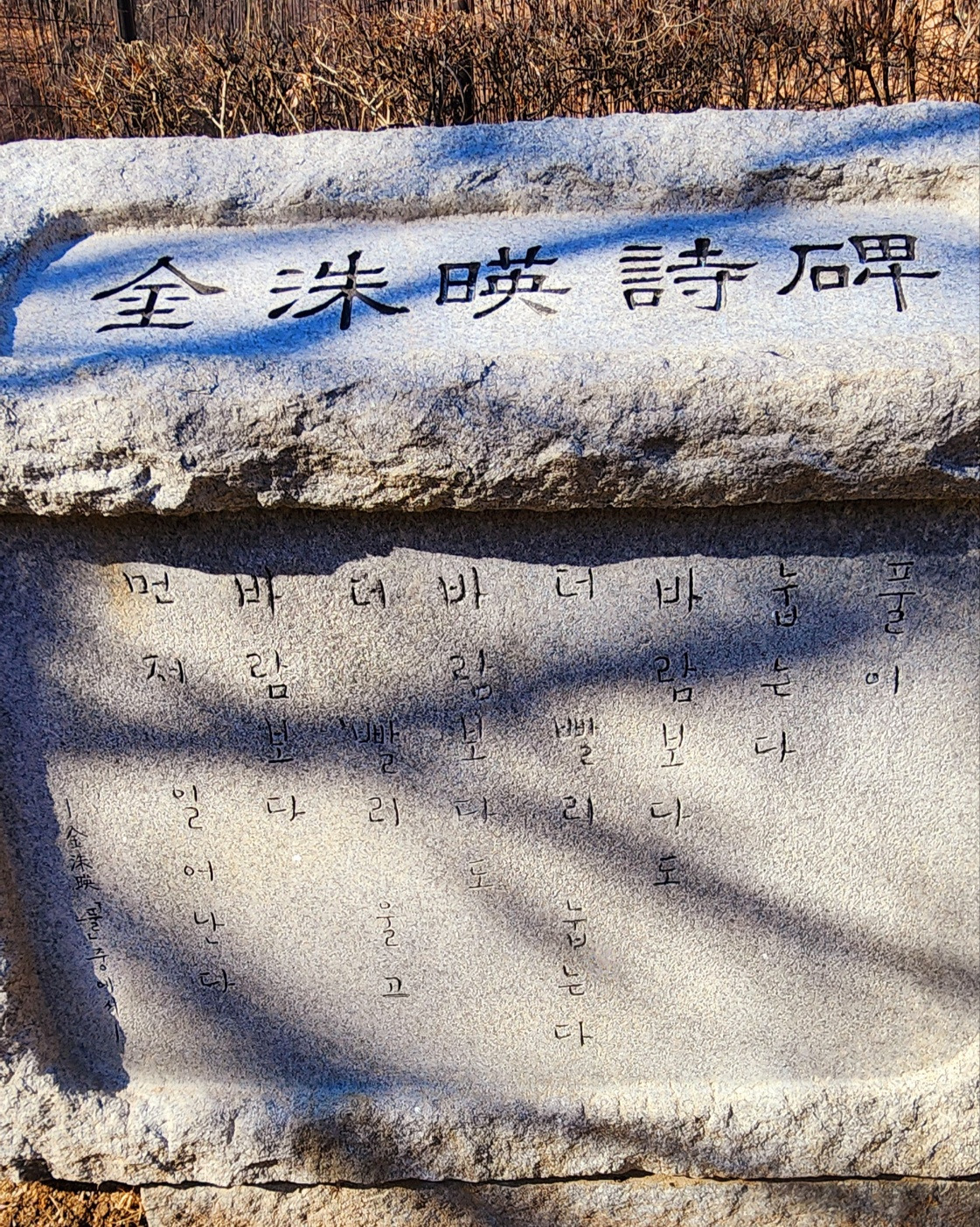 다시 조금 걸어가니 김수영 시인의 시비가 보였다.